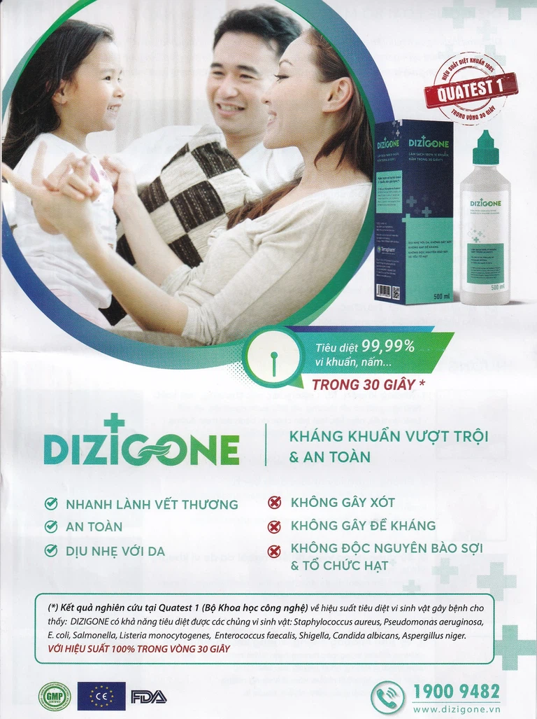Dizigone là dung dịch kháng khuẩn hiệu lực mạnh mẽ, cho ứng dụng đa dạng với các loại tổn thương da liễu và khoang miệng. Dizigone mang đến giải pháp chăm sóc da ưu việt, an toàn cho mọi lứa tuổi.