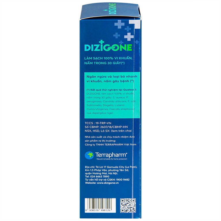 Dung dịch kháng khuẩn Dizigone được sản xuất bởi Công ty TNHH Terrapharm Việt Nam. Được thành lập từ năm 2015, Terrapharm Việt nam là doanh nghiệp tiên phong ứng dụng khoa học công nghệ tiên tiến từ Châu Âu vào các sản phẩm có chất lượng vượt trội. Các lĩnh vực Terrapharm Việt nam tập trung phát triển: Thuốc, thực paharm chức năng, thiết bị y tế.