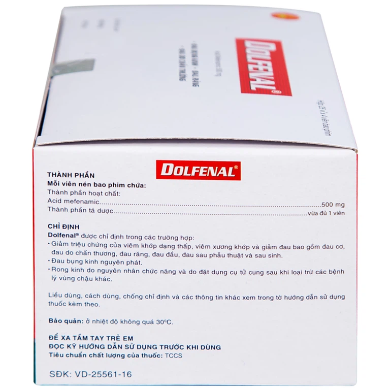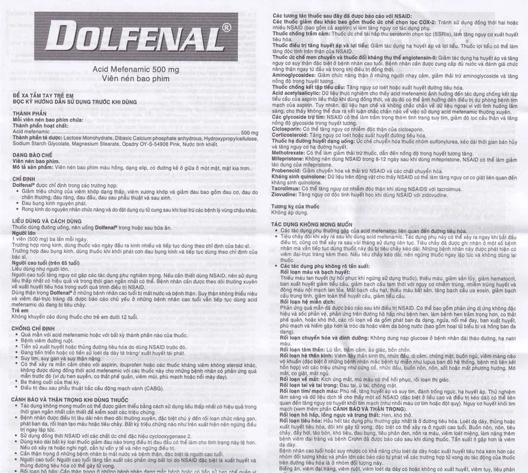 Dùng cho trẻ em trên 12 tuổi và người lớn: Dolfenal 500 mg uống 1 viên/lần x 3 lần/ngày.