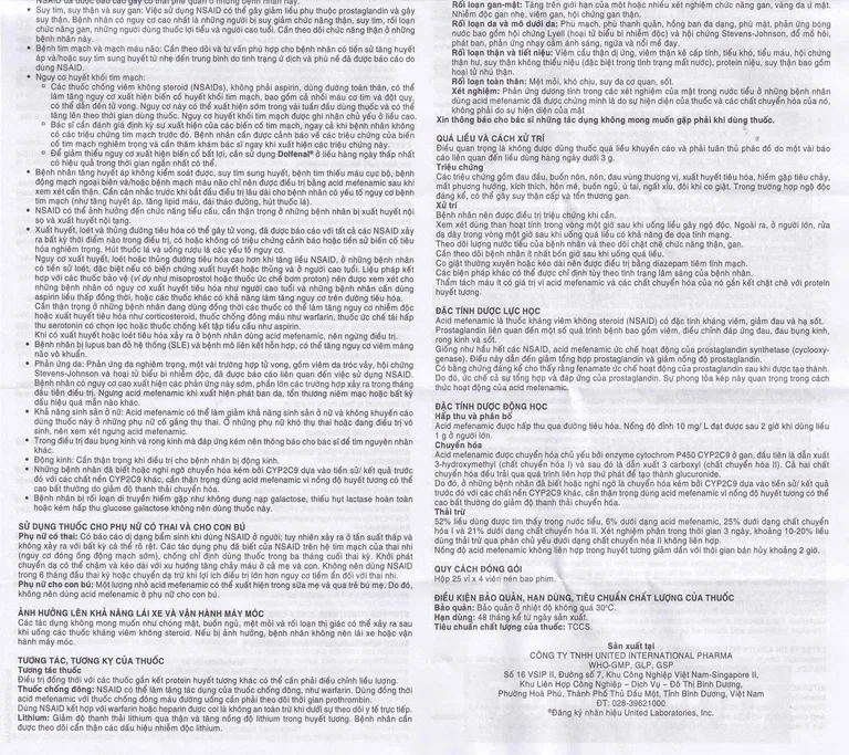 Khi có xuất huyết hoặc loét tiêu hóa xảy ra ở bệnh nhân dùng acid mefenamic, nên ngừng điều trị. - Bệnh nhân bị lupus ban đỏ hệ thống (SLE) và bệnh mô liên kết hỗn hợp, có thể tăng nguy cơ viêm màng não vô khuẩn.