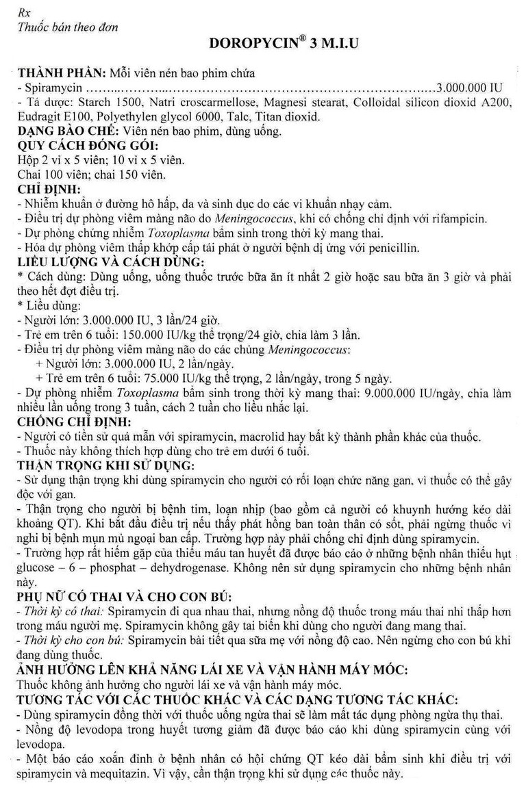 Công dụng của Thuốc Doropycin 3 M.I.U