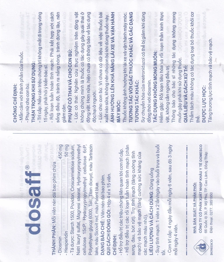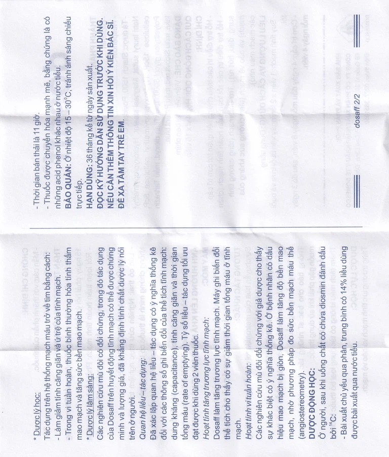 Các nghiên cứu mù đôi có đối chứng, trong đó tác dụng của thuốc Dosaff trên huyết động tĩnh mạch có thể được chứng minh và lượng giá, đã khẳng định tính chất dược lý nói trên ở người.