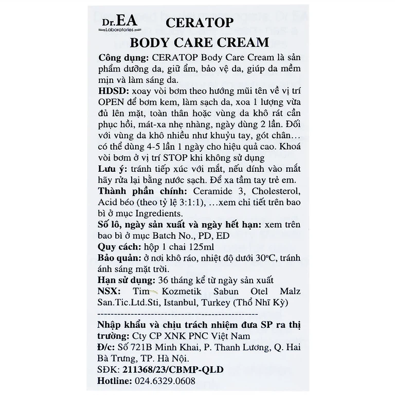Kem Ceratop Body Care Cream 125ml Dr.EA dưỡng da, giữ ẩm, bảo vệ da