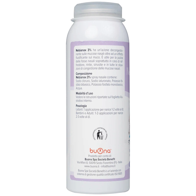Dung dịch xịt mũi Nebianax 3% Spray Nasale mang lại hiệu quả giữ ẩm và làm sạch mũi hàng ngày, đặc biệt trong các trường hợp cảm lạnh , viêm mũi, viêm xoang, viêm phổi, viêm phế quản,… và trong mọi trường hợp tác nghẽn niêm mạc mũi do nhầy nhớt.