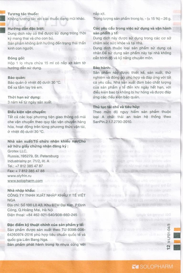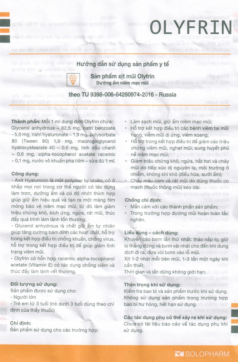 Thành phần của Dung dịch xịt mũi Olyfrin 15ml