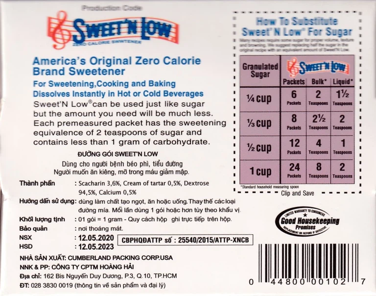Thành phần của Đường ăn kiêng Sweet’n Low