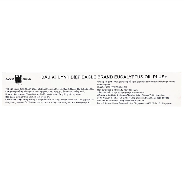 Thành phần của Eagle Brand Eucalyptus Oil Plus+