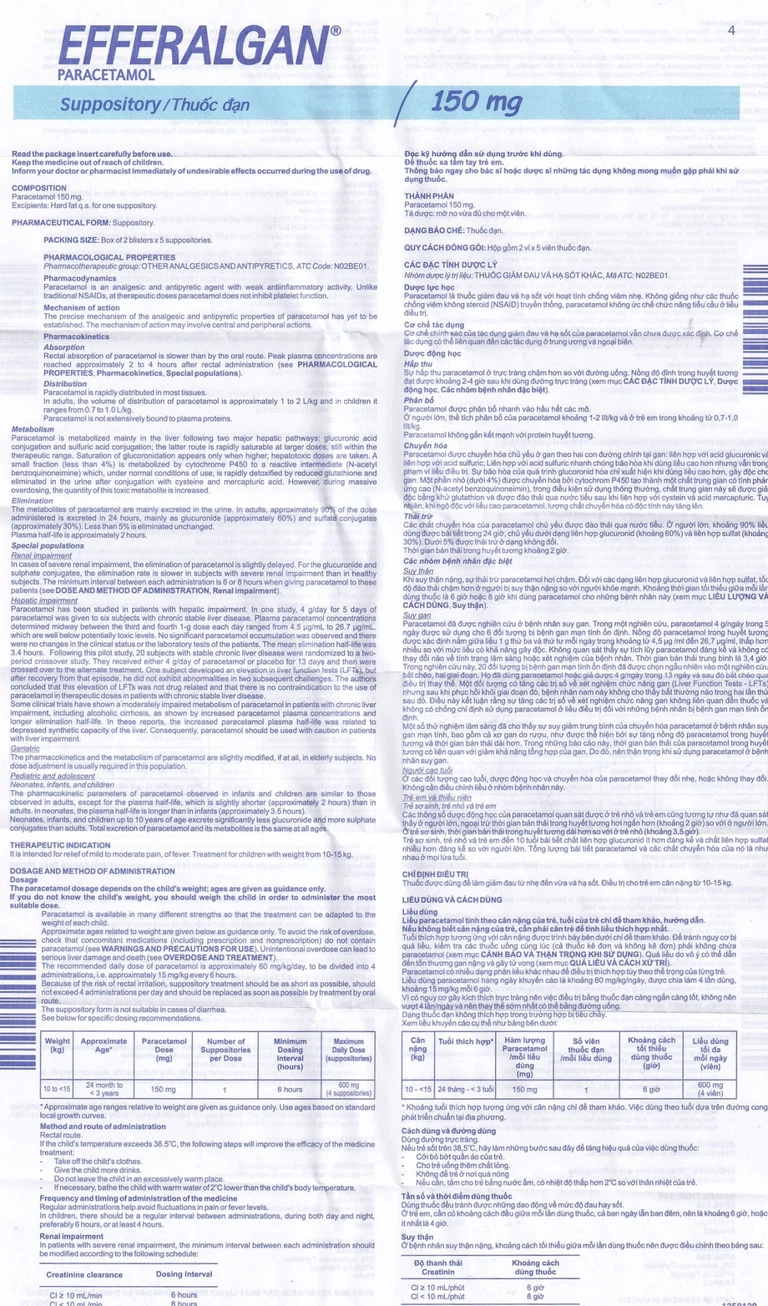 Cách dùng Thuốc đạn Efferalgan 150mg