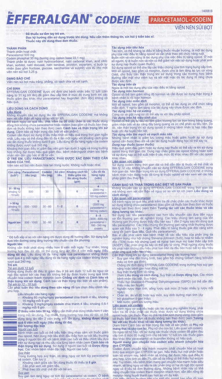 Liên quan với Efferalgan Codeine 500mg Bristol
