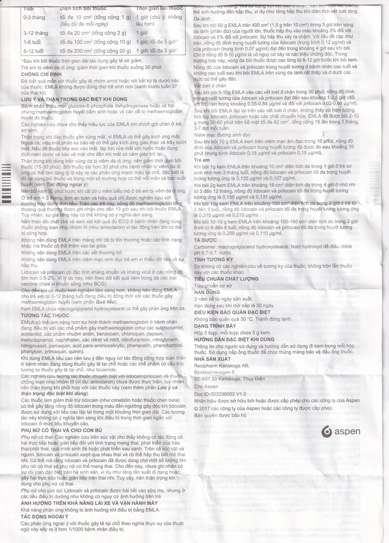 - Emla 5% đã được sử dụng cho đến 15 lần thực hiện thủ thuật điều trị trong vòng 1 – 2 tháng mà không bị giảm hiệu quả của thuốc hoặc tăng số lượng phản ứng tại chỗ.