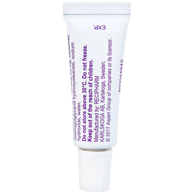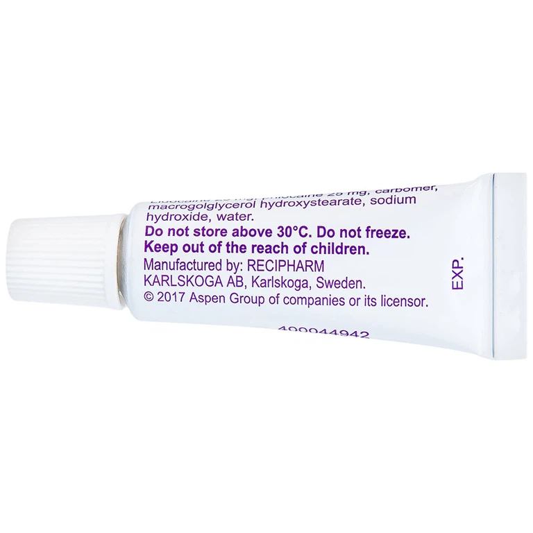 - Để cắt bỏ Condilôm hoặc trước khi tiêm gây tê tại chỗ: Khoảng 5 – 10g, tùy thuộc vào vùng được điều trị. Phải đắp thuốc toàn bộ bề mặt, kể cả các nếp gấp niêm mạc. Không cần thiết phải băng kín.