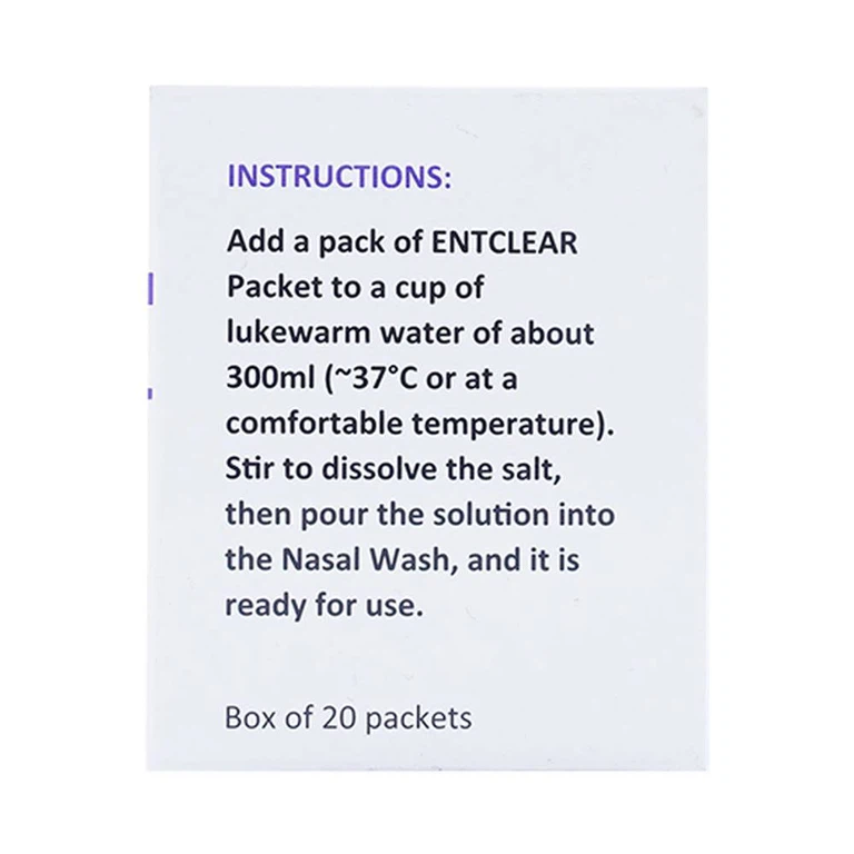 Gói muối biển Entclear cùng với bình xịt mũi dùng để rửa sạch hốc mũi.