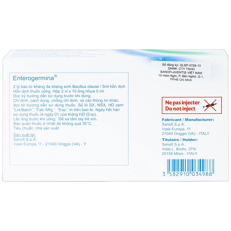 Lắc kỹ ống thuốc trước khi dùng. Xoắn vặn phần trên để mở ống thuốc. Uống thuốc Enterogermina trong ống hoặc hòa thuốc trong ống với sữa, nước trà hoặc nước cam.
