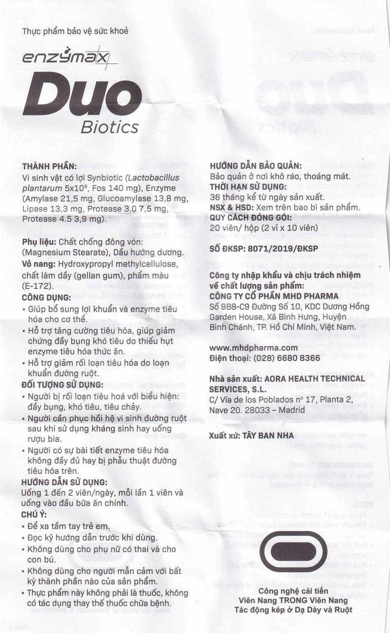 Viên uống Enzymax Duo Biotics là thực phẩm chức năng đến từ thương hiệu MHD Pharma. Đây là nhà phân phối dược phẩm đáng tin cậy tại Việt Nam. Luôn luôn tập trung vào chất lượng sản phẩm và hiệu quả điều trị để đáp ứng nhu cầu của người bệnh. MHD Pharma tập hợp đầy đủ các chuyên gia có kinh nghiệm lâu năm cùng với các ứng dụng khoa học kĩ thuật tiên tiến, đem đến chất lượng sản phẩm tốt nhất cho người dùng. Viên uống Enzymax Duo Biotics là một trong những sản phẩm nổi tiếng hàng đầu của MHD Pharma và được nhiều người dùng tin tưởng.
