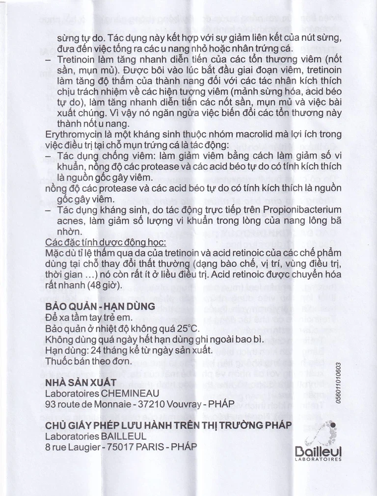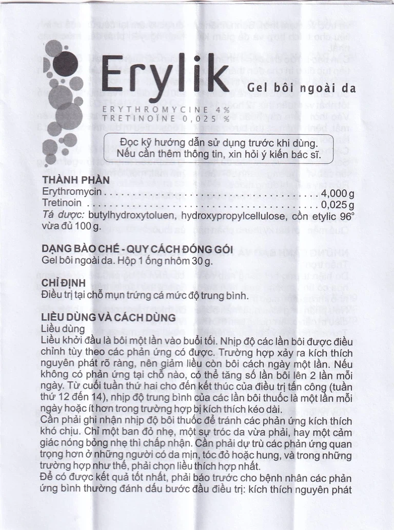 Thuốc trị mụn Erylik này là một kết hợp giữa tretinoin và erythromycin.