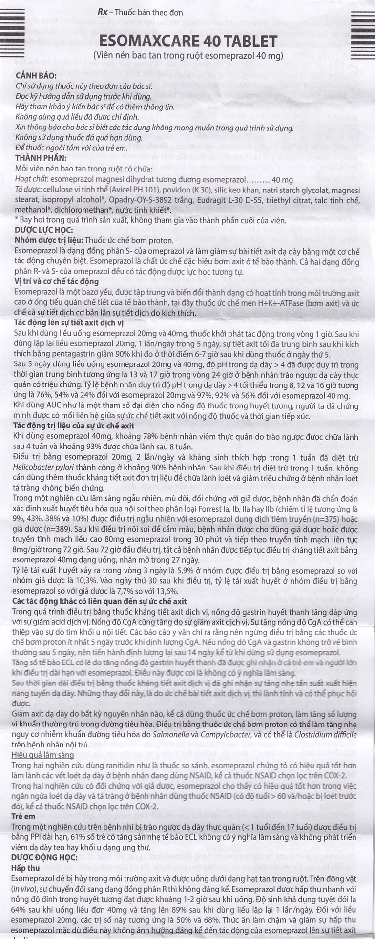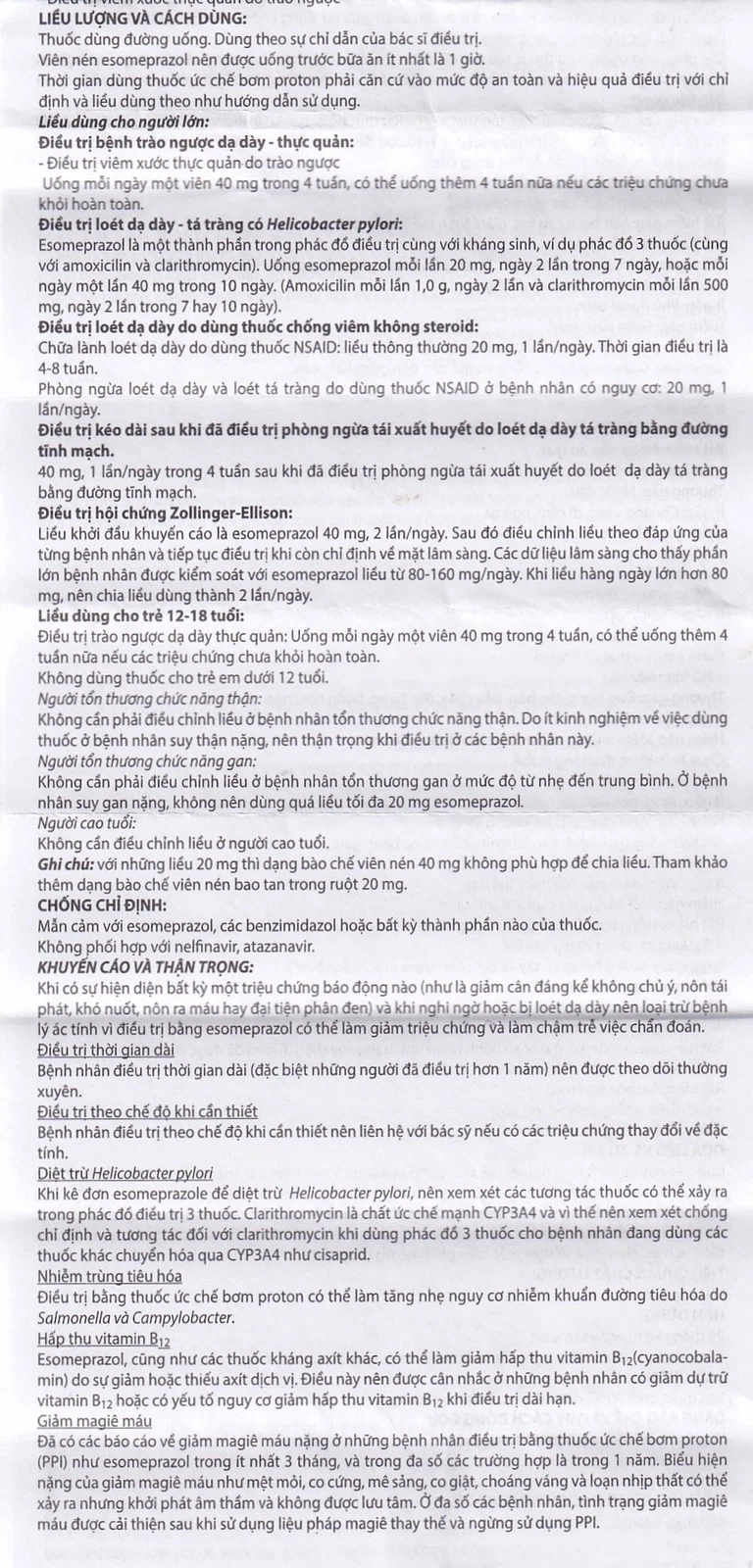 - Liều khởi đầu khuyến cáo là esomeprazol 40mg x 2 lần/ngày.