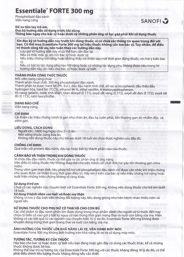 Chưa có các nghiên cứu chuyên biệt với Essentiale Forte 300 mg, không nên dùng thuốc cho trẻ em dưới 18 tuổi.