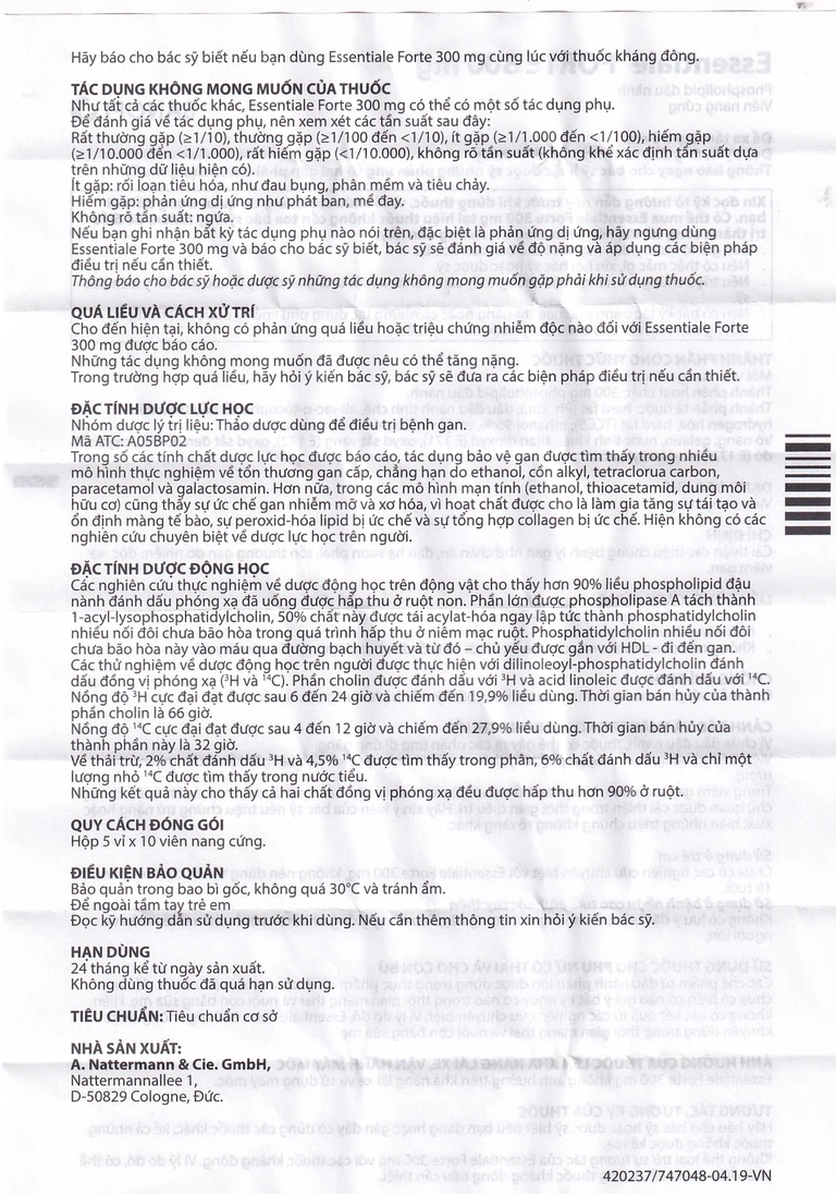 Không thể loại trừ sự tương tác của Essentiale Forte với các thuốc kháng đông. Vì lý do đó, có thể phải điều chỉnh liều lượng thuốc kháng đông nếu cần thiết. Hãy báo cho bác sỹ biết nếu bạn dùng Essentials Forte cùng lúc với thuốc kháng đông.