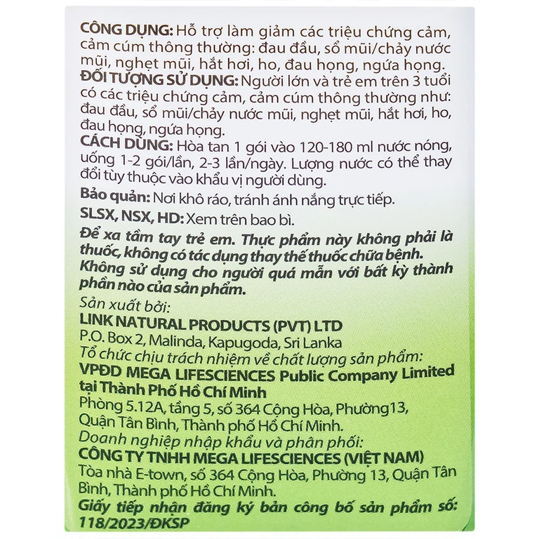 Tinh chất thảo dược Eugica Cold & Flu hỗ trợ giảm các triệu chứng cảm, cảm cúm (10 gói x 4g)