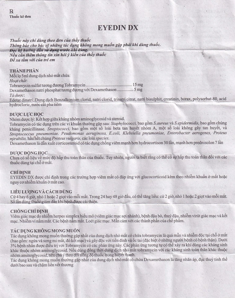 Thành phần của Thuốc nhỏ mắt Eyedin DX