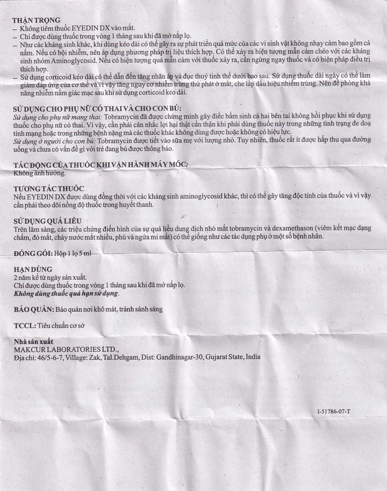 Trên lâm sàng, các triệu chứng điển hình của sự quá liều dung dịch nhỏ mắt tobramycin và dexamethason (viêm kết mạc dạng chấm, đỏ mắt, chảy nước mắt nhiều, phù và ngứa mi mắt) có thể giống như các tác dụng phụ ở một số bệnh nhân.