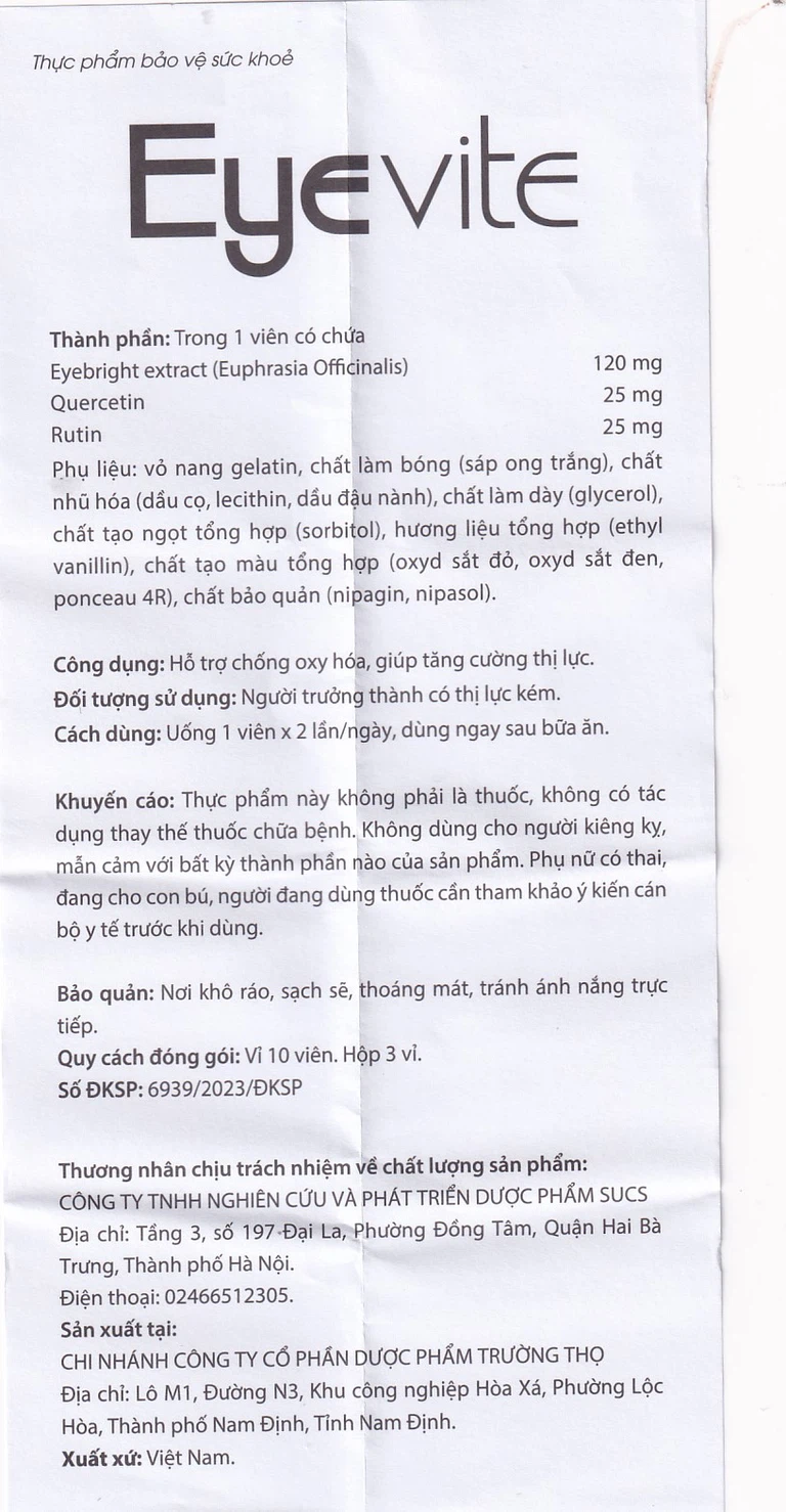 Viên uống Eyevite Sucs hỗ trợ chống oxy hóa, tăng cường thị lực (3 vỉ x 10 viên)