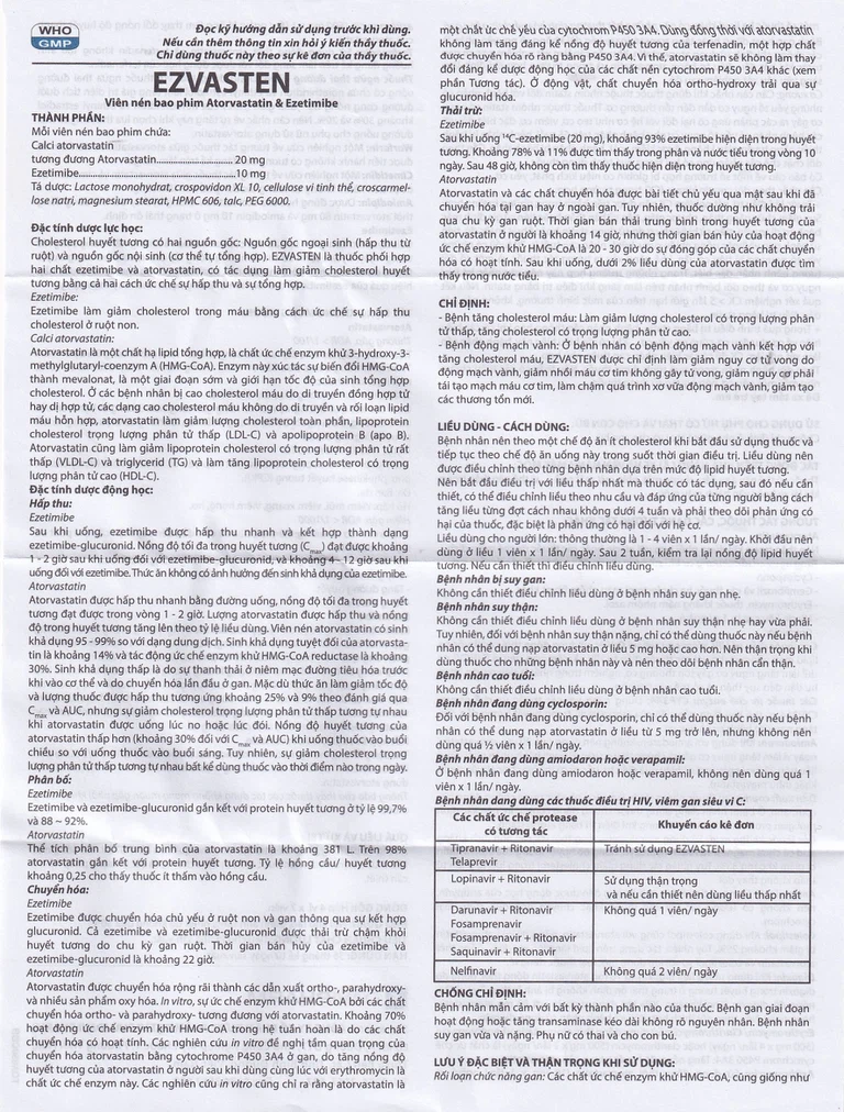 Khi sử dụng thuốc Ezvasten, bạn có thể gặp các tác dụng không mong muốn (ADR).