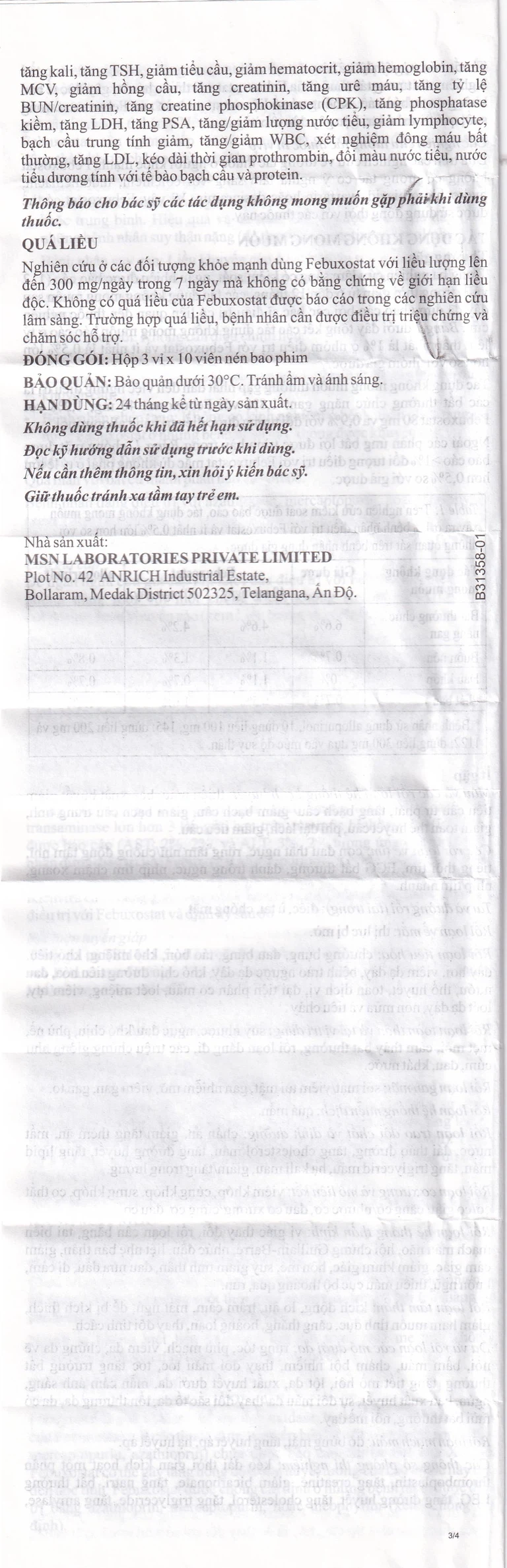 Rối loạn tuyến giáp: Tăng giá trị TSH (>5.5 IU/ml) được báo cáo ở bệnh nhân điều trị lâu dài với febuxostat (5.0%). Cần thận trọng khi sử dụng febuxostat ở những bệnh nhân có thay đổi chức năng tuyến giáp.