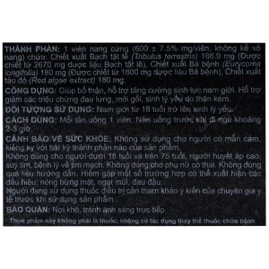 - Hỗ trợ cải thiện sức khỏe sinh lý, tăng cường sinh lực và giảm các triệu chứng của quá trình mãn dục nam.