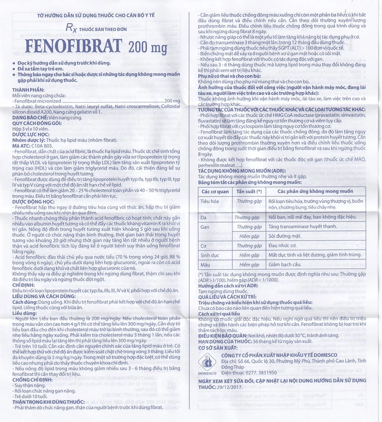 Fenofibrate , dẫn chất của acid fibric,là thuốc hạ lipid máu.Thuốc ức chế sinh tổng hợp cholesterol ở gan, làm giảm các thành phần gây xơ vữa (lipoprotein tỷ trọng rất thấp VLDL và lipoprotein tỷ trọng thấp LDL) làm tăng sản xuất lipoprotein tỷ trọng cao (HDL) và còn làm giảm triglyceride máu. Do đó, cải thiện đáng kể sự phân bố cholesterol trong huyết tương.