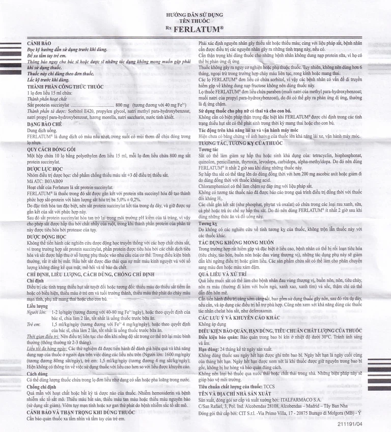 Ferlatum có chứa paraben (natri methyl – p – hydroxybenzoat, natri propyl – p – hydroxybenzoat) nên có thể gây ra những phản ứng dị ứng chậm phát.