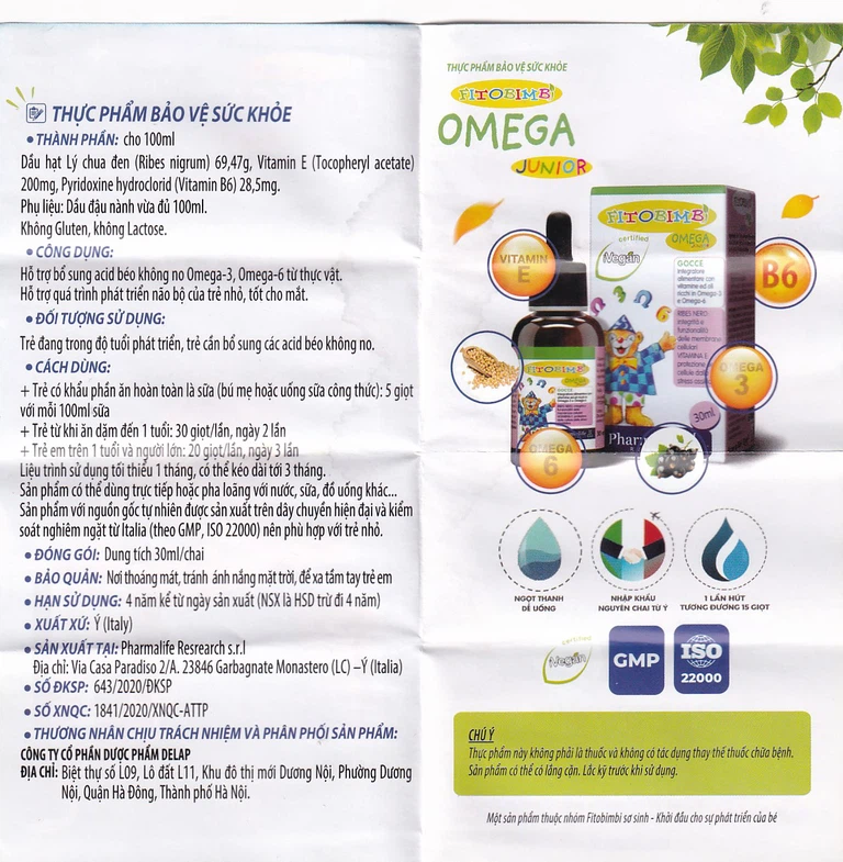 Fitobimbi Omega Junior giúp bổ sung acid béo không no Omega-3, Omega-6 từ thực vật. Hỗ trợ phát triển não bộ của trẻ nhỏ, tốt cho mắt.