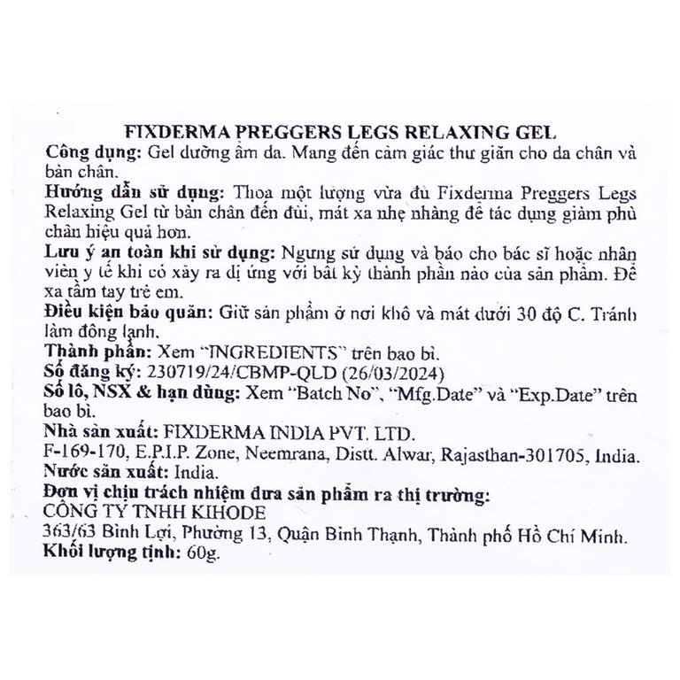 Công dụng của Gel Preggers Leg Relaxing 60g