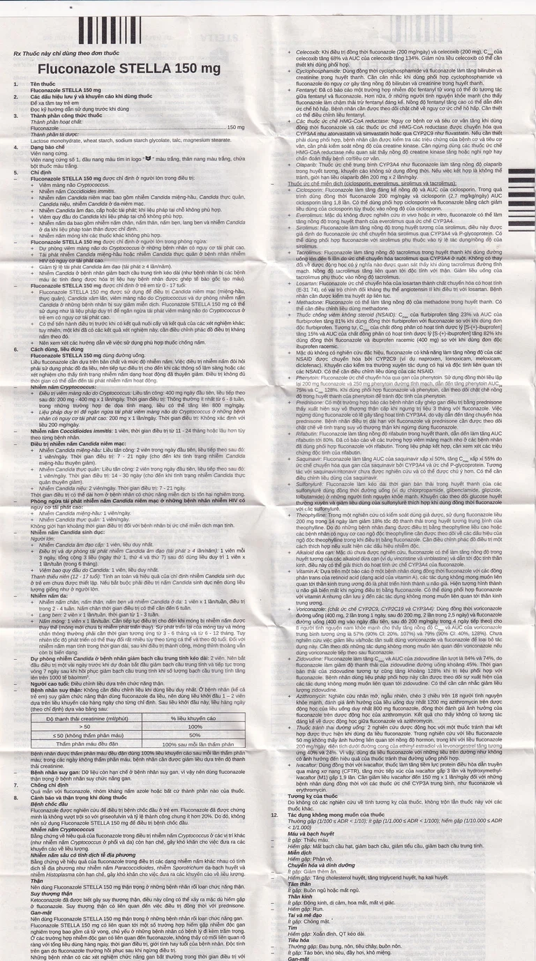 Fluconazole Stella 150mg có chứa lactose. Không nên dùng thuốc này cho bệnh nhân có các vấn đề về di truyền hiếm gặp không dung nạp galactose, thiếu hụt enzym lactase toàn phần hay kém hấp thu glucose – galactose. Fluconazol 150mg có chứa tinh bột mỳ. Những bệnh nhân bị dị ứng với lúa mỳ (khác với bệnh tiêu chảy phân mỡ) không nên dùng thuốc này.