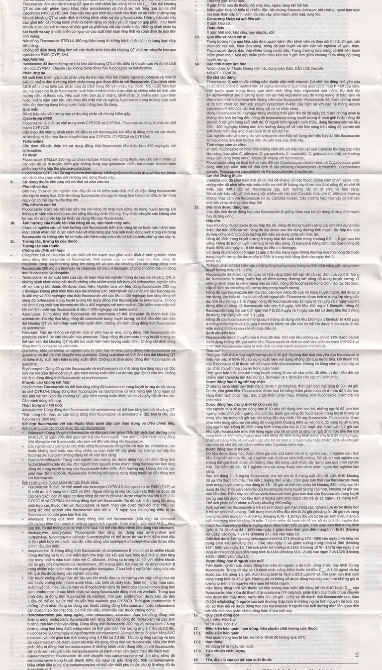 Phenytoin: Fluconazole ức chế chuyển hóa qua gan của phenytoin. Sử dụng đồng thời liều lặp lại 200mg fluconazole và 250mg phenytoin đường tĩnh mạch, dẫn đến tăng phenytoin AUC24 75% và Cmin 128%. Khi dùng phối hợp fluconazole và phenytoin, cần theo dõi chặt chẽ nồng độ trong huyết thanh của phenytoin để tránh độc tính của phenytoin.