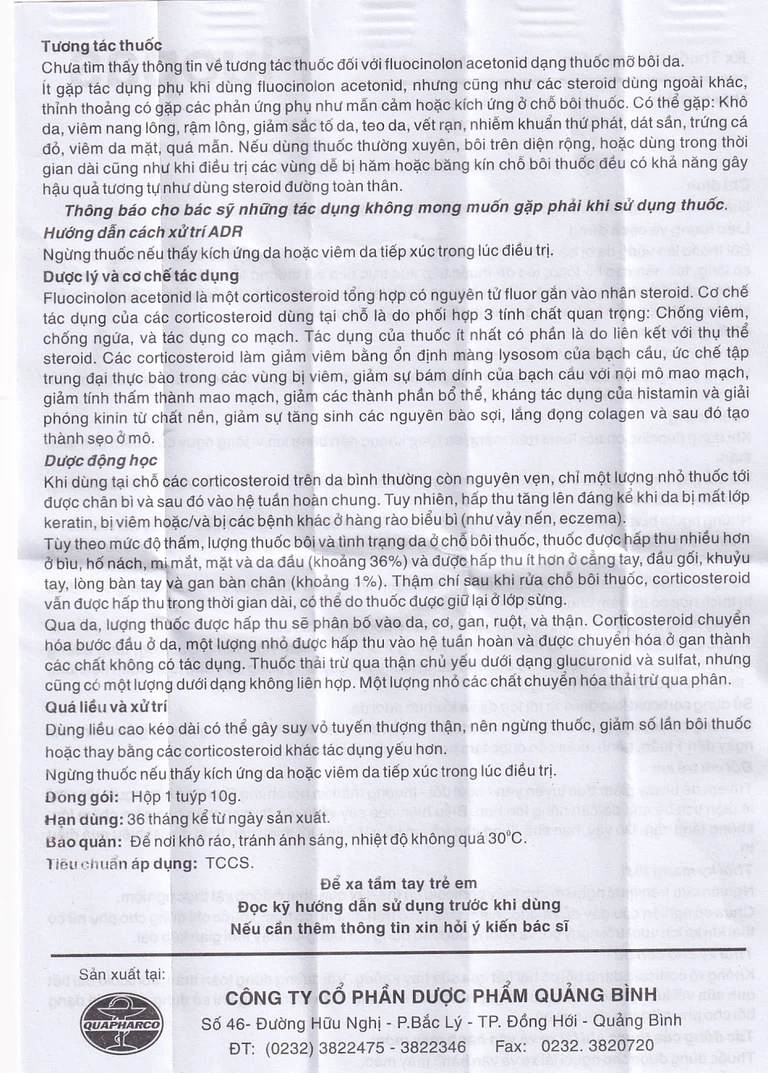 Khi dùng fluocinolon acetonid trên mảng da rộng không nên băng kín vì tăng nguy cơ nhiễm độc toàn thân.
