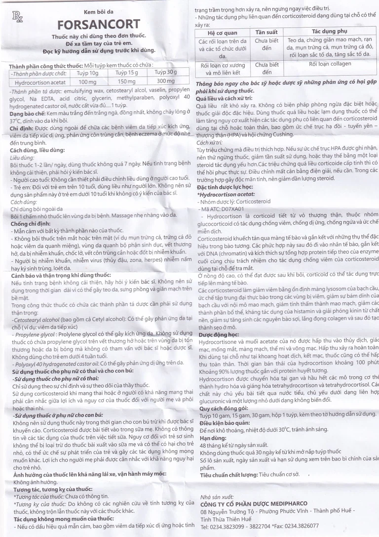 Thuốc bôi Forsancort chống chỉ định trong các trường hợp sau:
