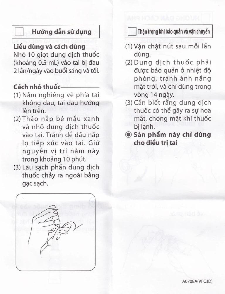 Chỉ sử dụng thuốc để nhỏ tai. Không được sử dụng thuốc để nhỏ mắt.