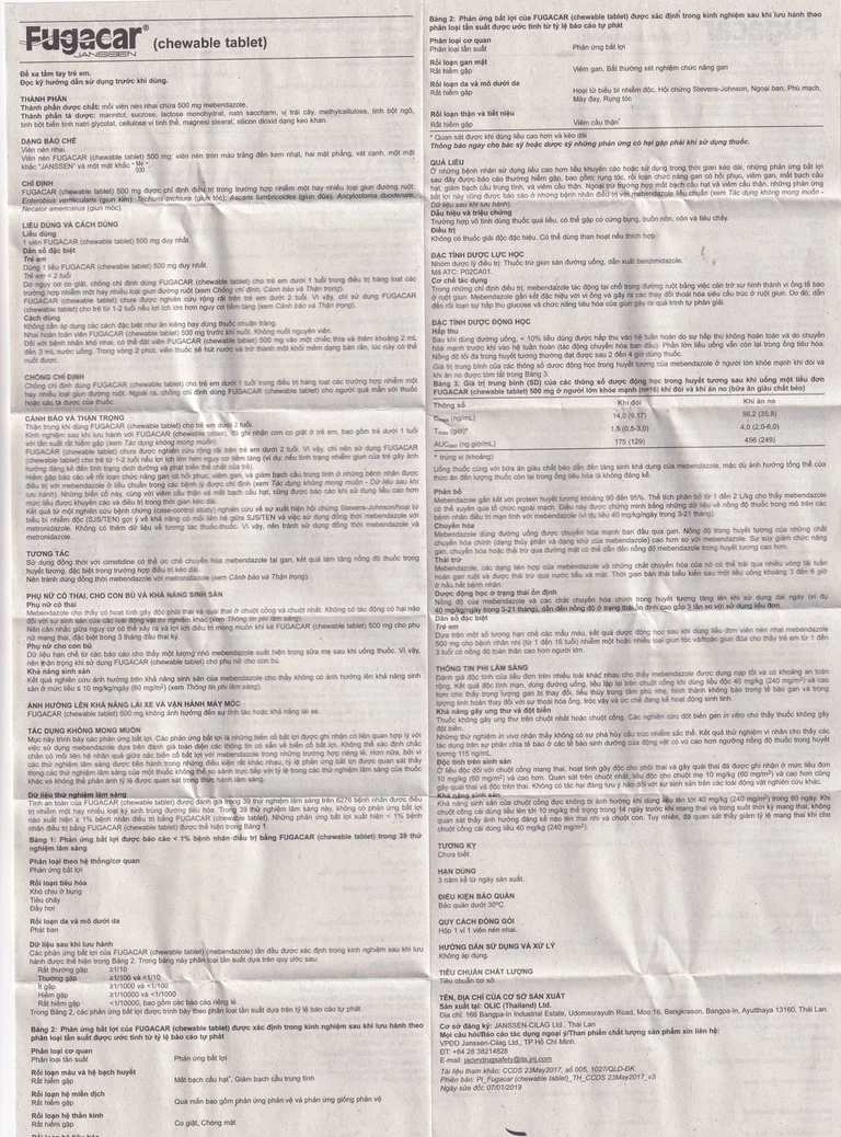 Trẻ em:Dùng 1 liều Fugacar 500 mg duy nhất.