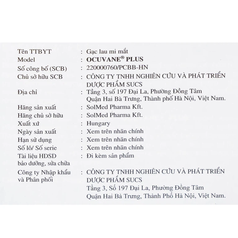 Thành phần của Gạc lau mi mắt Ocuvane Plus