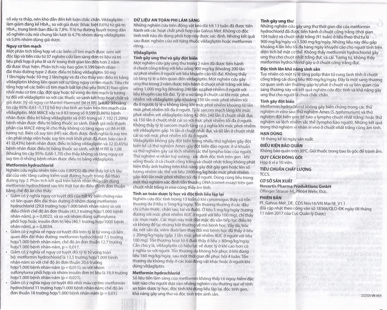 Hiệu lực và tính an toàn của từng thành phần đã được xác định trước đây và việc dùng phối hợp mỗi thành phần đã được đánh giá về hiệu lực và tính an toàn trong nghiên cứu lâm sàng. Những nghiên cứu lâm sàng này đã xác nhận thêm lợi ích của vildagliptin ở bệnh nhân đái tháo đường týp 2 không kiểm soát được tốt bằng metformin hydrochlorid đơn trị liệu (xem phần CÁC NGHIÊN CỨU LÂM SÀNG).
