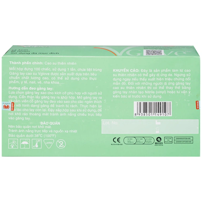 Găng tay cao su y tế nhám không bột VGlove được sản xuất dựa trên tiêu chuẩn chất lượng cao, có thể sử dụng cho thực phẩm, y tế, nail, vẽ, nha khoa…