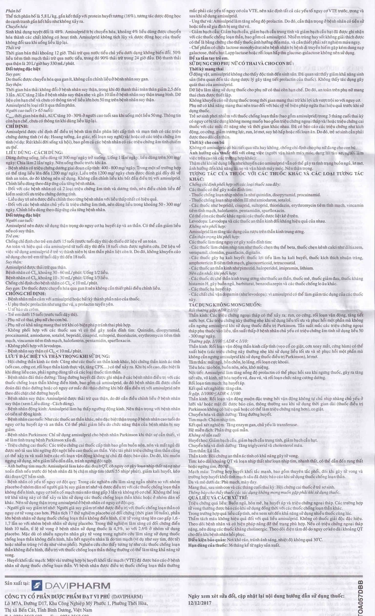 Huyết khối tắc mạch (VTE): Bệnh nhân được điều trị thuốc chống loạn thần thường mắc phải các yếu tố nguy cơ của VTE, nên xác định tất cả các yếu tố nguy cơ VTE trước, trong và sau khi sử dụng amisulprid.