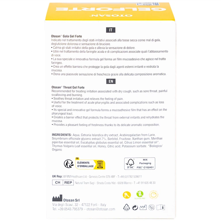 - Gel ngậm họng Otosan Throat Gel Forte giúp giảm nhanh ho, viêm họng, đau họng, khàn tiếng .
