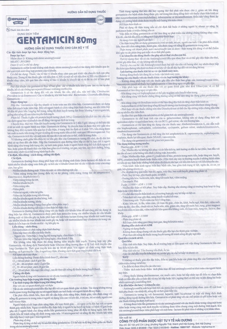 Công dụng của Dung dịch tiêm Gentamicin 80mg