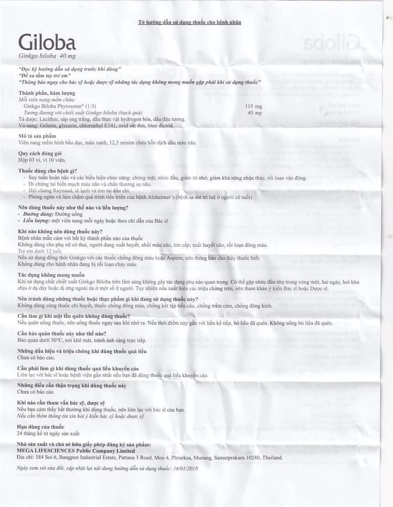 Không sử dụng Giloba 40mg cho trẻ dưới 12 tuổi.