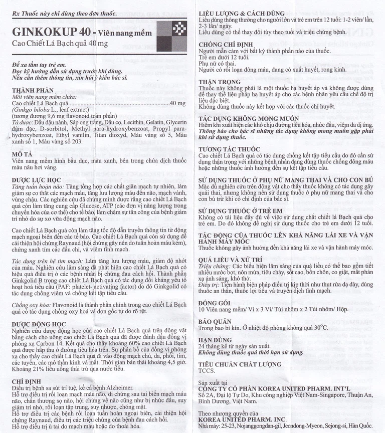 Thuốc Ginkokup 40 được chỉ định dùng trong các trường hợp sau: