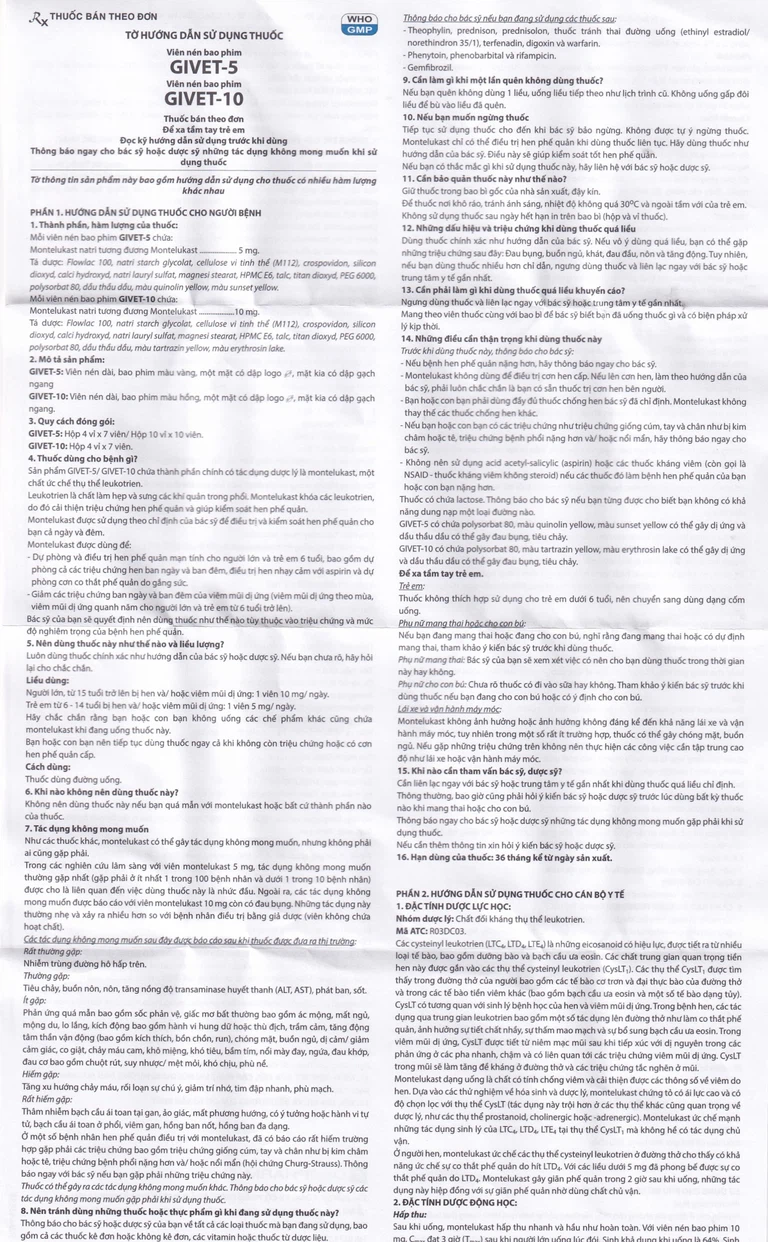 Thuốc Givet – 5 chống chỉ định trong trường hợp quá mẫn cảm đối với montelukast hoặc bất kỳ thành phần nào của thuốc.