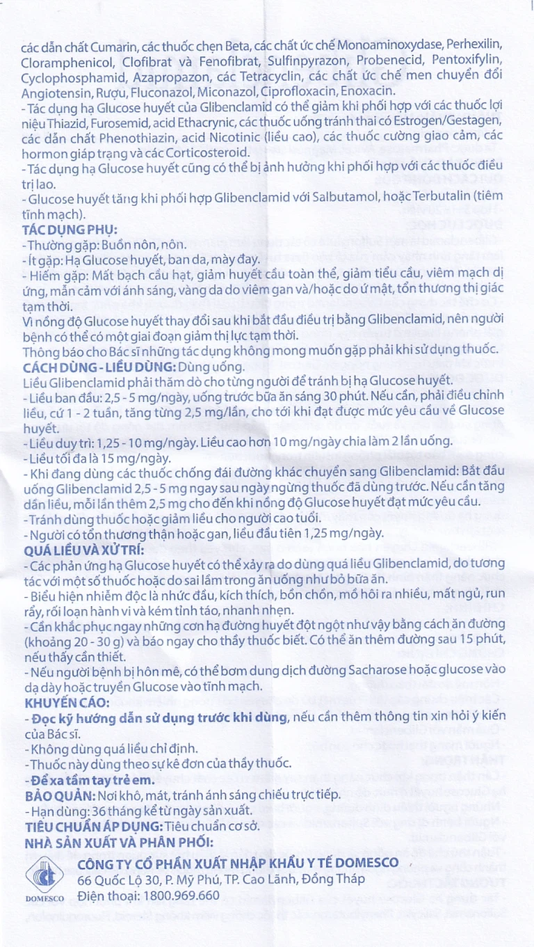 Glucose huyết tăng khi phối hợp glibenclamid với salbutamol, hoặc terbutalin (tiêm tĩnh mạch).