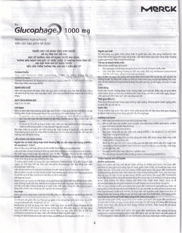 Dùng ở bệnh nhân lớn tuổi: Vì tiềm năng giảm chức năng thận ở người già, nên chỉnh liều Glucophage 1000mg dựa trên chức năng thận. Vì lý do này cần thiết đánh giá thường xuyên chức năng thận.